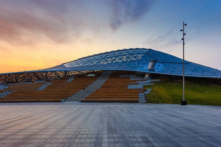 سازه عظیم ۲۵۰۰۰ مترمربعی کنسرت هال، با وجود این که در فضای اصلی پارک قرار دارد، اما به طور مستقیم زیر نظر و مدیریت پارک نیست. این سالن چندمنظوره که از لحاظ ساختار معماری هم به عنوان یکی از جاذبههای گردشگری مسکو خودش را دارد، قابلیت اجرای کنسرتهای سمفونیک کلاسیک، پاپ و جز را نیز دارد. با داشتن یک سالن بزرگ با گنجایش ۱۵۶۰ نفری و یک سالن کوچک ۴۰۰ نفری در مجموع حدود ۲۰۰۰ نفر گنجایش دارد. آمفیتئاتر اعجابانگیز پارک که در امتداد سالن کنسرت قرار دارد، بزرگترین فضای نیمهبازی است که دمای هوای داخل آن حتی در زمستان بدون تغییر میماند. این فضا توسط یک گنبد بزرگ به اسم پوست شیشهای محافظت میشود. پخش فیلم، اجرای کنسرت، برگزاری ایونت و سخنرانی از قابلیتهای این آمفیتیاتر است که شما در سفر به مسکو میتوانید از این امکانات استفاده کنید. تکنولوژی روز دنیا در این مکان به کمک مسئولان پارک آمده تا یکی از برترین جاذبههای گردشگری مسکو را تشکیل دهند و به بهترین نحو ممکن فضا را برای آموزش و تعلیم اقلیم روسیه پهناور برای بازدیدکنندگان به وجود بیاورد. بعد از ساخت ماشین زمان که شما را از تاریخ و پیشینهی روسیه آگاه میکند و همچنین بعد از غار یخی که از شمال دور به شما اطلاع میداد، اینبار با نشستن پشت صندلیهای مخصوص و متحرک در مقابل صفحههای نمایش بزرگ و یکپارچه به هر کجای روسیه که خواستید میتوانید سفر کنید. این تکنولوژی به صورت آنلاین وضعیت جوی مانند دما، وزش باد و حتی بارش قطرات باران را میتواند برای بازدیدکننده بازسازی کند.در طبقه زیرین پارک یک موزه باستانی احداث شده است که شامل سکهها، کاشیها و آثار دستی مابین قرن ۱۴ام تا ۱۸ام روسیه هستند. همچنین بخشی که موزه به آن بسیار افتخار میکند قسمتی از دیوار سنگی سفید کیتایگرودسکایا، مربوط به قرن ۱۶ام است که توسط باستانشناسان بازسازی شده است. بازیهای کامپیوتری و رکوردی و بخش جنگی از دیگر قسمتهای موزه هستند. مسکو یکی از شهرهای غنی از لحاظ داشتن مکانهای دیدنی است، به طوری که این موزه میتوانست یکی از برترین جاذبههای گردشگری مسکو باشد، با این حال گردشگران خارجی زیادی از آن بازدید نمیکنند.