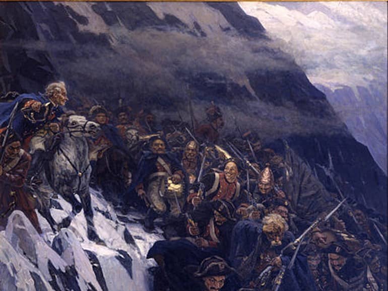 یکی از نقاشیهایی که بههیچوجه نباید فرصت دیدن آن در خلال برنامههای تور سنت پترزبورگ را از دست بدهید، نقاشی «گذر سوروف از آلپ» است که موزه دولتی روسیه نگهداری میشود. این نقاشی یکی از شاهکارهای هنری از هنرمند مشهور واسیلی سوریکوف است. سوریکوف یکی از تاریخیترین صحنههای تاریخ روسیه را در این نقاشی به تصویر کشیده است. ژنرال سوروف یکی از قهرمانان ارتش روسیه است که در یکی از کمپینهای خود تصمیم به گذر از آلپ از یکراه خطرناک را گرفت. سوریکوف به خوبی وضعیت روحی و احساسی سربازان را در این نقاشی به تصویر کشیده است که شما میتوانید این جزئیات را در چهره هر یک از سربازان پیدا کنید. شما همچنین میتوانید ژنرال سوروف را نیز در گوشه چپ نقاشی در حال فرمان دادن به سربازان خود پیدا کنید که زیردستان خود را به پیشروی تشویق میکند. این نقاشی فوقالعاده به نوعی بخشی از تاریخ روسیه است که میتوانید آن را در موزه دولتی روسیه پیدا کنید. تصویر این نقاشی همچنین به شکل یک اثر هنری بزرگ موزائیکی در کنار دیگر نقاشی مشهور دررابطهبا سوروف یعنی «آغاز کمپین ۱۷۹۹ سوروف» را بر روی دیوار خارجی موزه یادبود الکساندر سوروف (Alexander Suvorov Memorial Museum) در سنت پترزبورگ پیدا کنید. واسیلی سوریکوف قصد نمایش شجاعت ازخودگذشتگی سربازان و رهبرشان را در این نقاشی داشت که با بازدید از آن در خلال برنامههای تور گردشگری روسیه متوجه موفقیت وی در این زمینه خواهید شد.